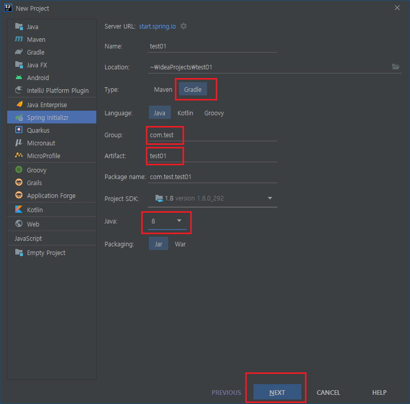 - 1. Spring Initializr 선택 -> 설정 -> NEXT