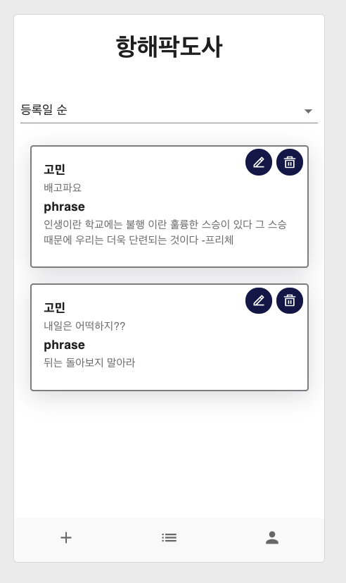 - 기본 기능은 다 구현했으나 아이피 추적, 좋아요 기능, 그리고 세션으로 유저 로그인 확인 기능을 넣었는데 생각보다 잘 풀리지 않았다. 계속 관계형 데이터 모델링의 필요성을 뼈저리게 느끼는 하루였다. 앞으로 공부할 것이 눈에 선명해지고 목표가 생겨서 좋다. 선택과 집중을 하자!!