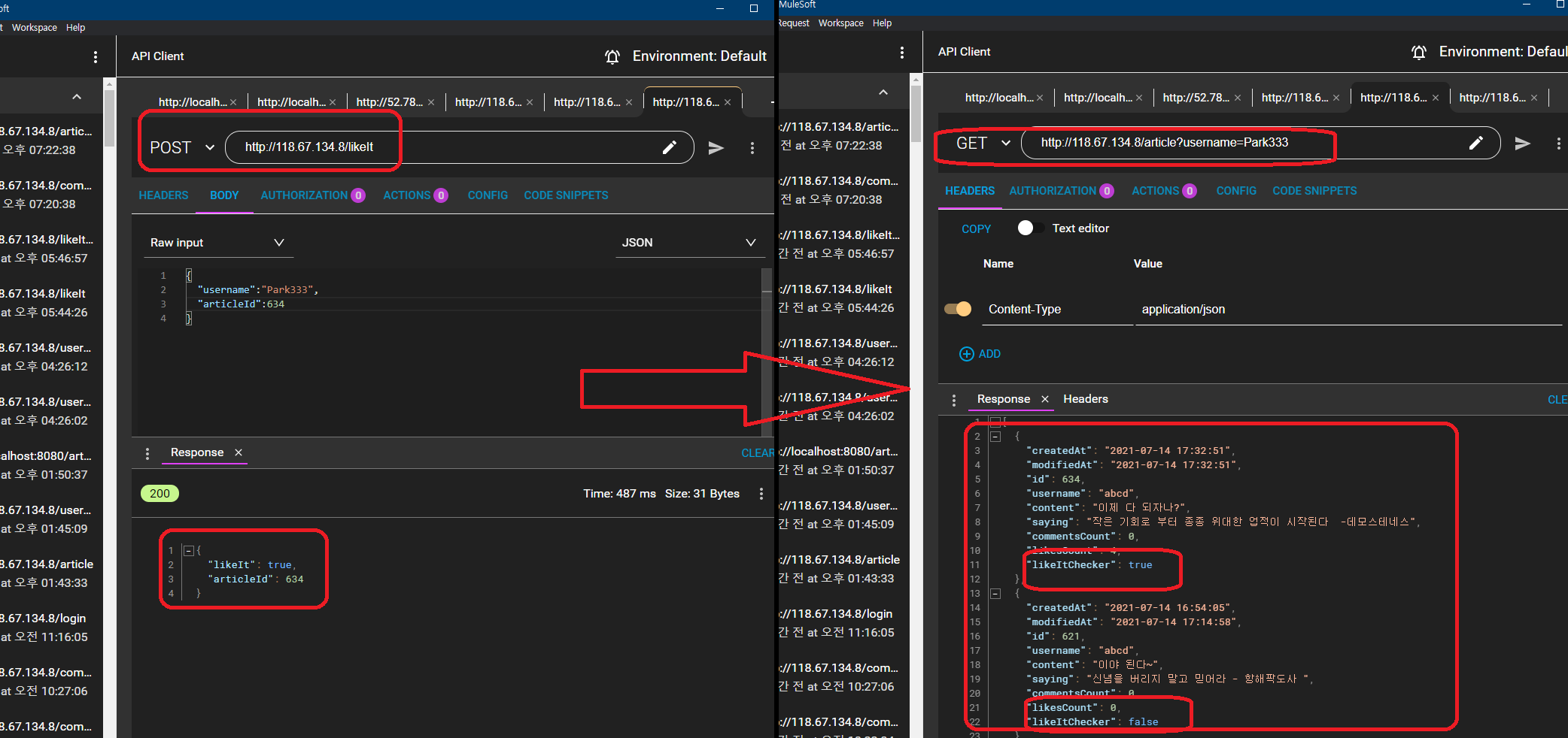 아래 스샷은 프론트팀이 요청한 정보를 추가해서 전달해주고 성공한 모습!