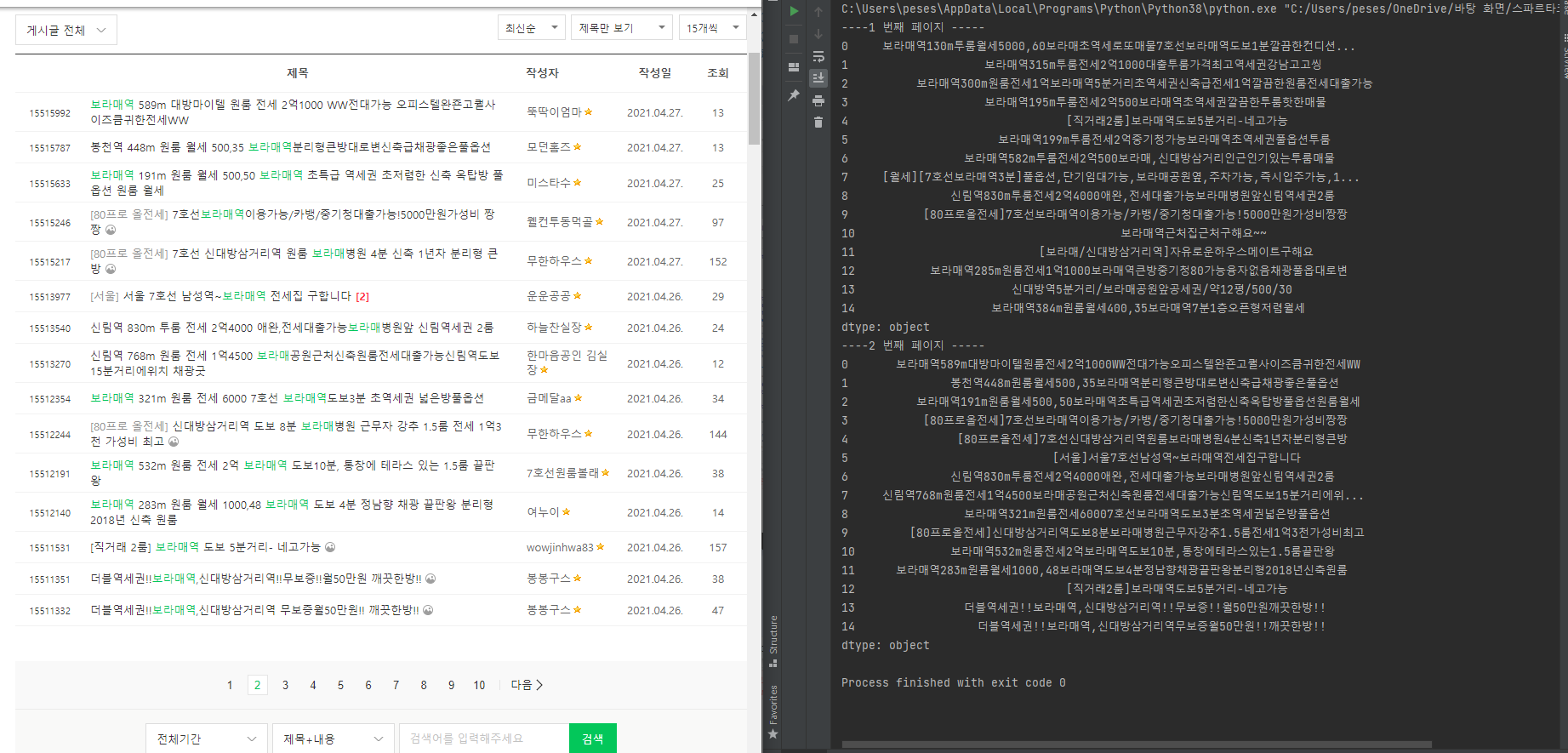 for 구문은 검색 결과 게시글 제목을 리스트로 저장, 출력하는 코드이다.