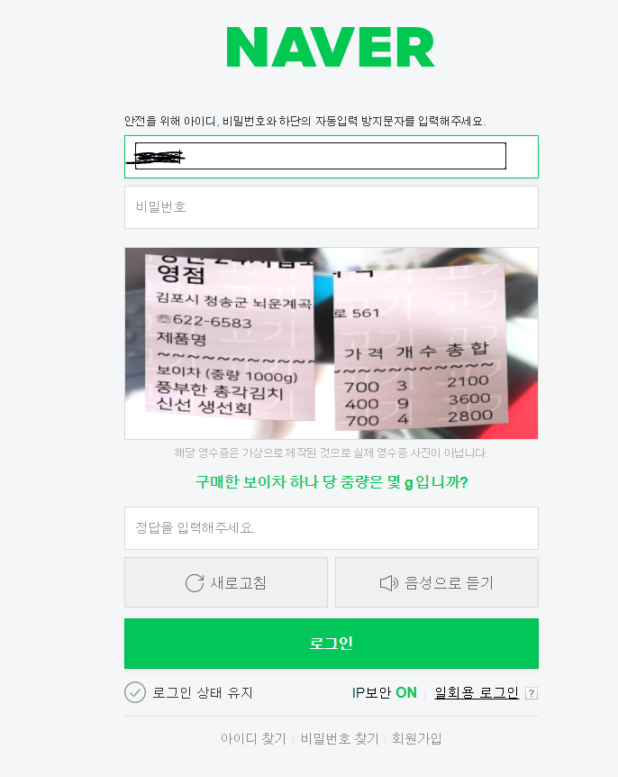 휴대폰으로 네이버 앱을 깔고 로그인 할 아이디의 2차 인증은 미리 해제해주세요.