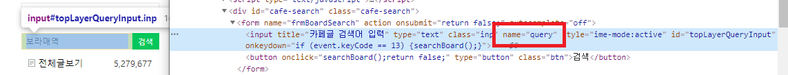 네이버 카페 내에서 카페내 검색 결과를 크롤링하는 방법