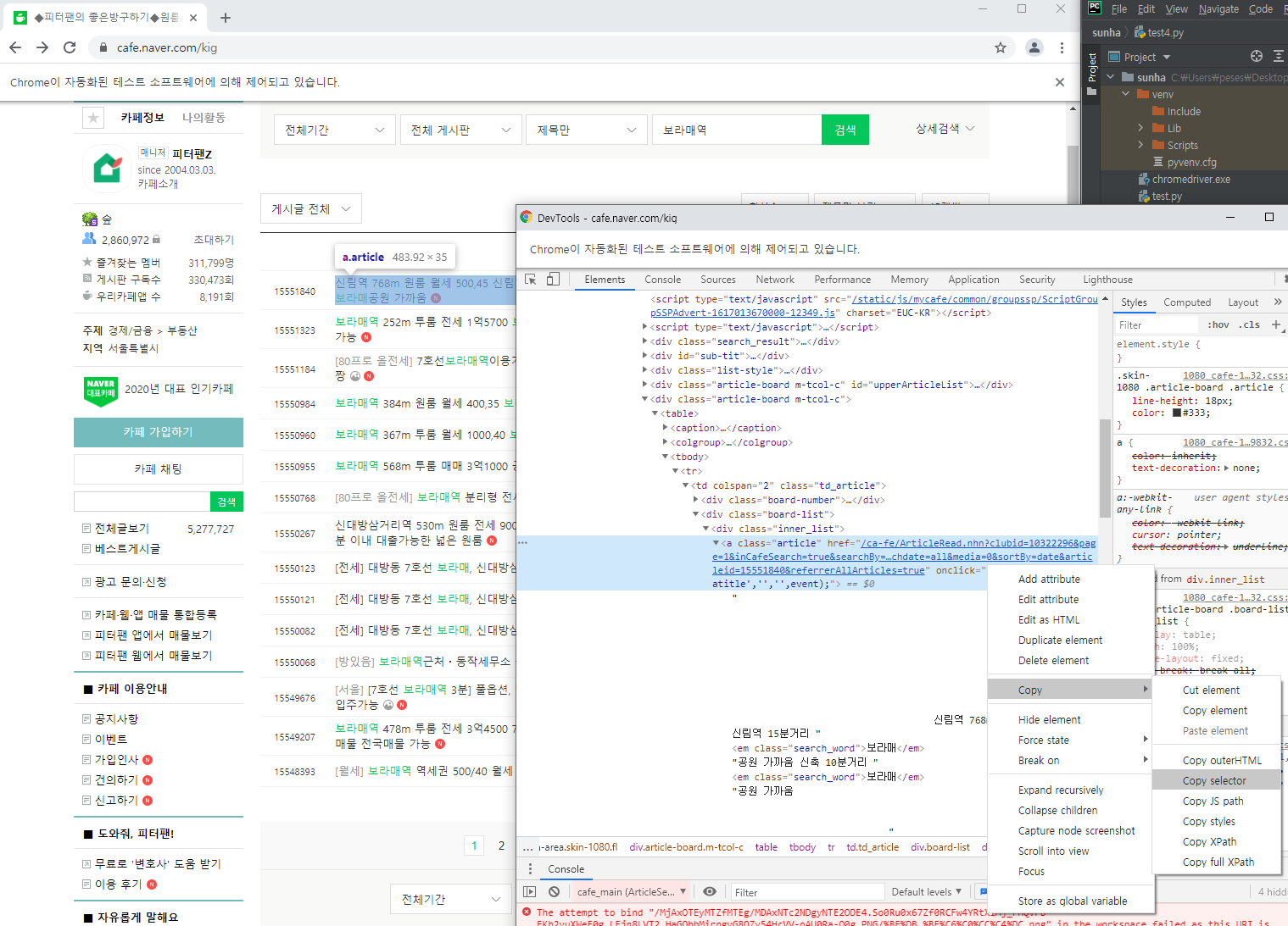 이 글은 네이버 카페내의 결과에서 게시글 제목을 리스트로 출력하고,