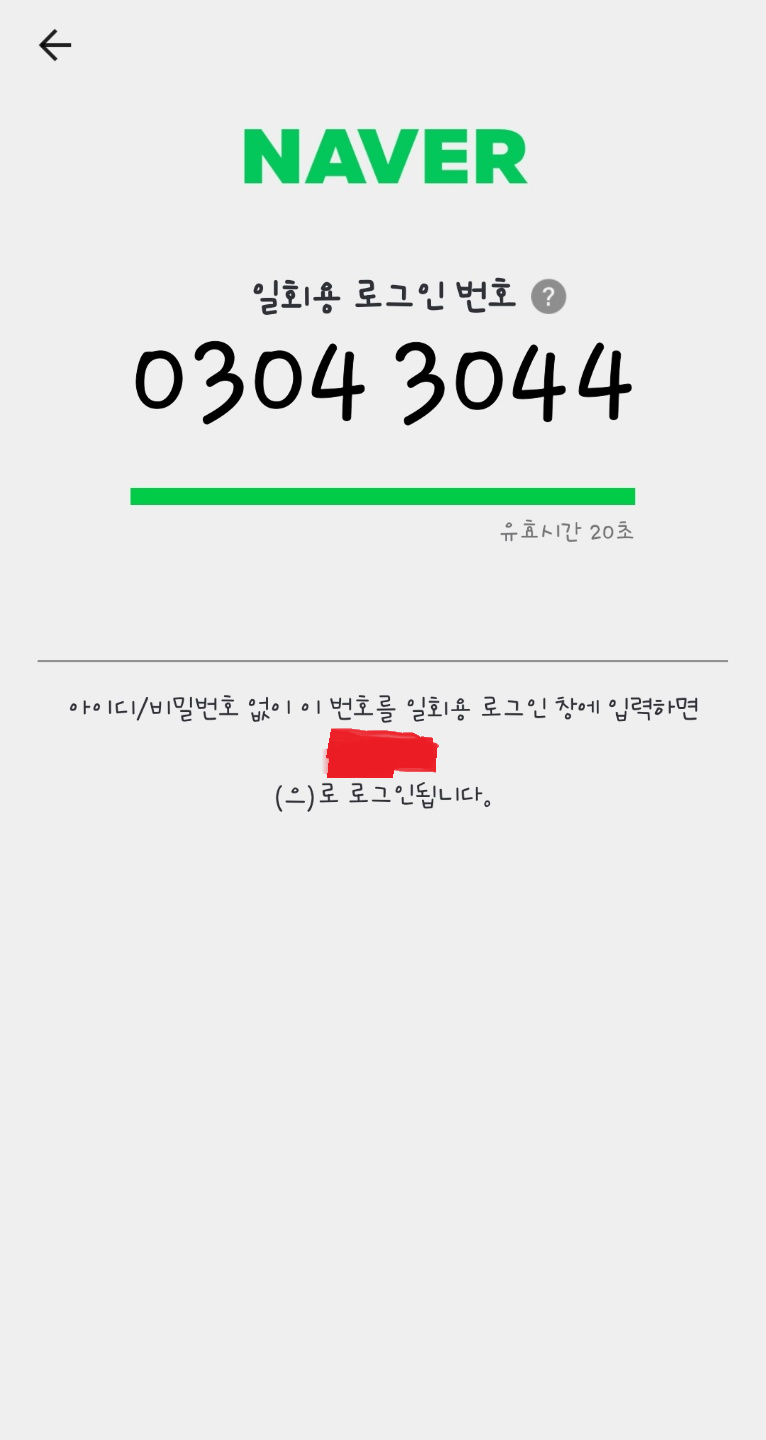 로그인을 한 뒤 다음과 같이 일회용 로그인 번호 받기 창으로 이동해준다.