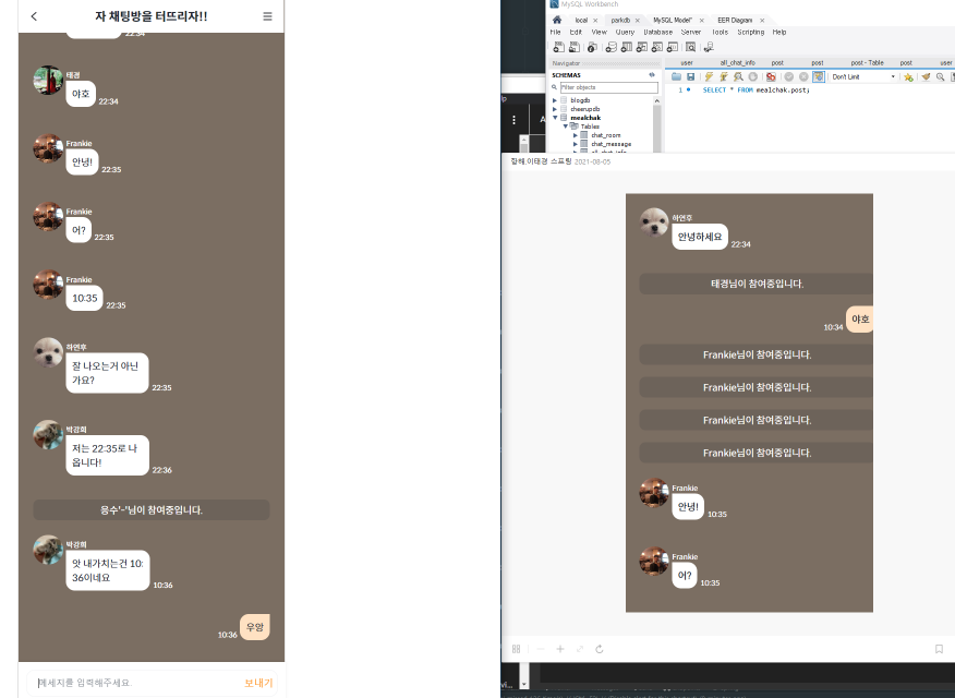다같이 우리가 만든 채팅방에 들어가서 대화하니 아주 재밋었다