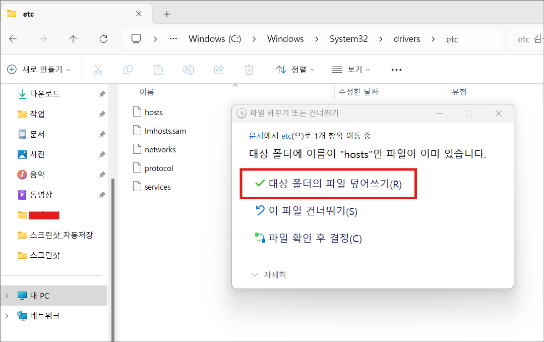 2. 바탕화면에 hosts 파일을 복사